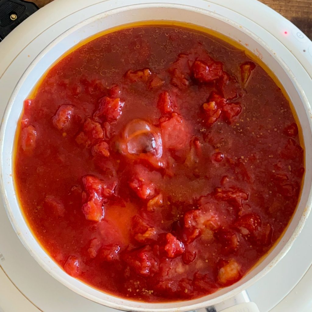 弱火にして、水分が2/3から半分くらいになるまで煮る。