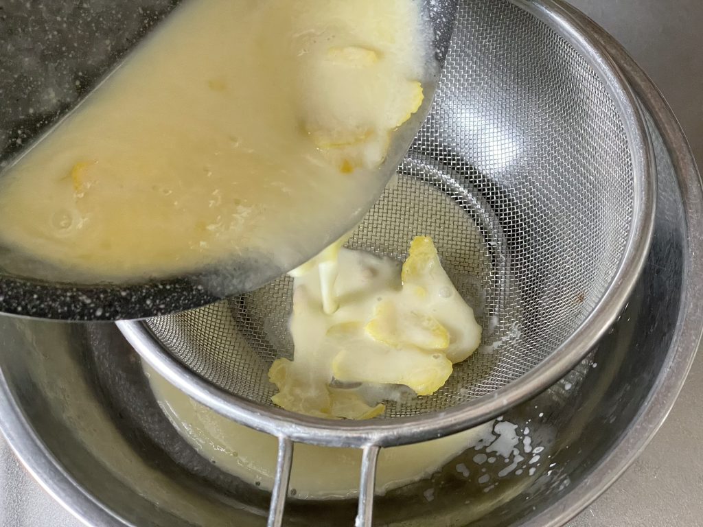 なめらかにするために、一度ザルで濾(こ)してください。