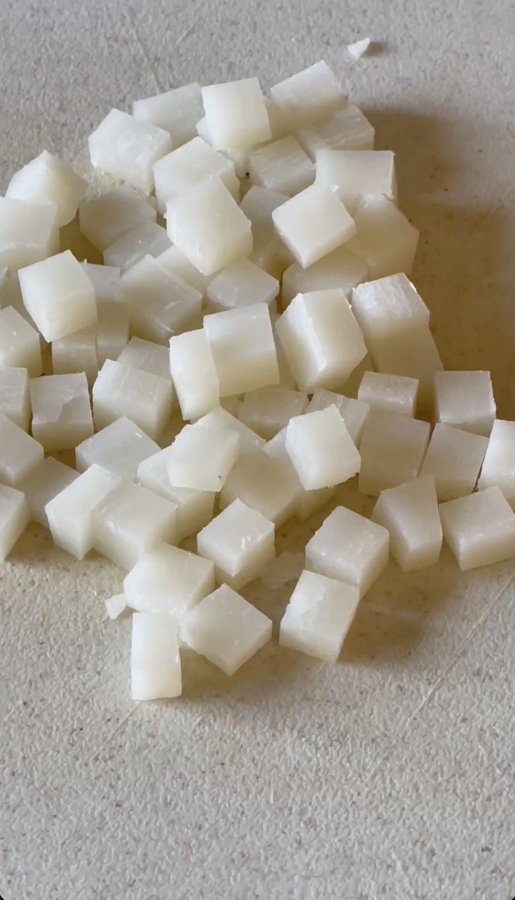 切り餅を1〜2cm角の小さめに切ることで、ごはんと一体化しやすく、「おこわ感」に。