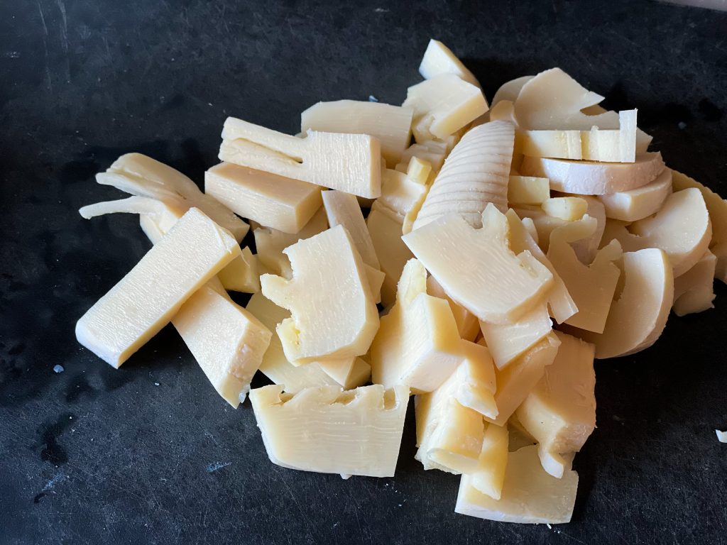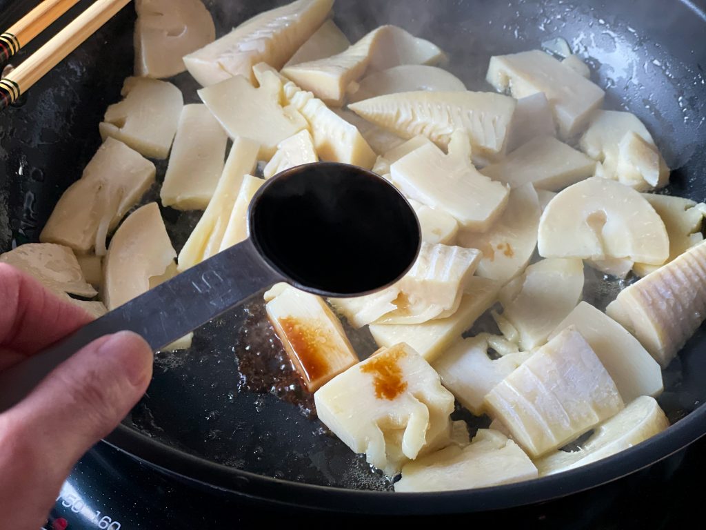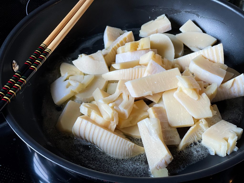 タケノコは食べやすい一口大に切ります。